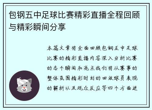 包钢五中足球比赛精彩直播全程回顾与精彩瞬间分享